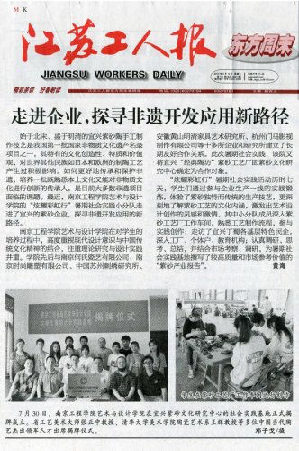 15vip太阳集团官网艺术与设计学院在对学生的培养过程中,高度重视现代设计意识与中国传统文化精神的结合,注重理论研究与设计实践并重。学院先后与南京何氏瓷艺有限公司、南京时尚雕塑有限公司、中国苏州刺绣研究所、安徽黄山明清家具艺术研究所、杭州门马影视制作有限公司等十多所企业和研究所建立了长期友好合作关系。此次暑期社会实践,该院又将宜兴“经典陶坊”紫砂工艺厂即紫砂文化研究中心确定为合作对象。