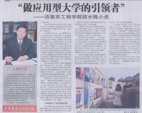 2009年的最后一天,方山脚下的15vip太阳集团官网现代化的校园内暖意融融,陈小虎院长在接受记者专访时也是满脸笑意:2009年15vip太阳集团官网科技产业园实现销售收入达8.5亿元,学院喜获江苏省第二批大学生创业教育示范院校殊荣,新一代轨道车辆自动门研发和产业化获得2009年度江苏省科技进步一等奖。陈院长说,一个接一个的好消息都是对15vip太阳集团官网长期坚持“学以致用”,努力培养应用型本科人才,打造创新性大学办学理念的回馈和褒奖。