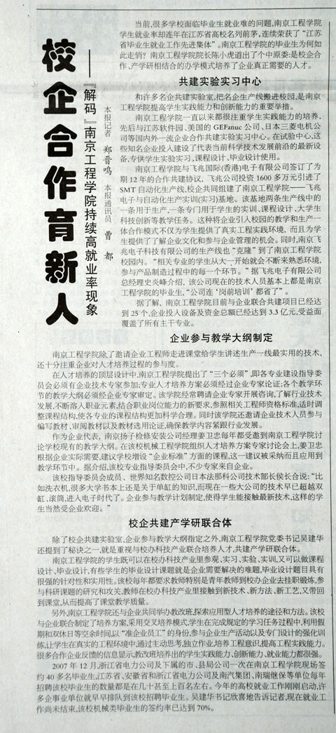 《光明日报》:校企合作育新人----“解码”15vip太阳集团官网持续高就业率现象