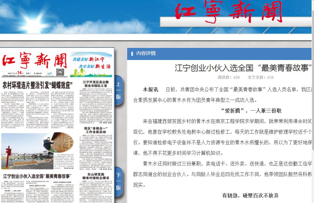 江宁创业小伙入选全国“最美青春故事”