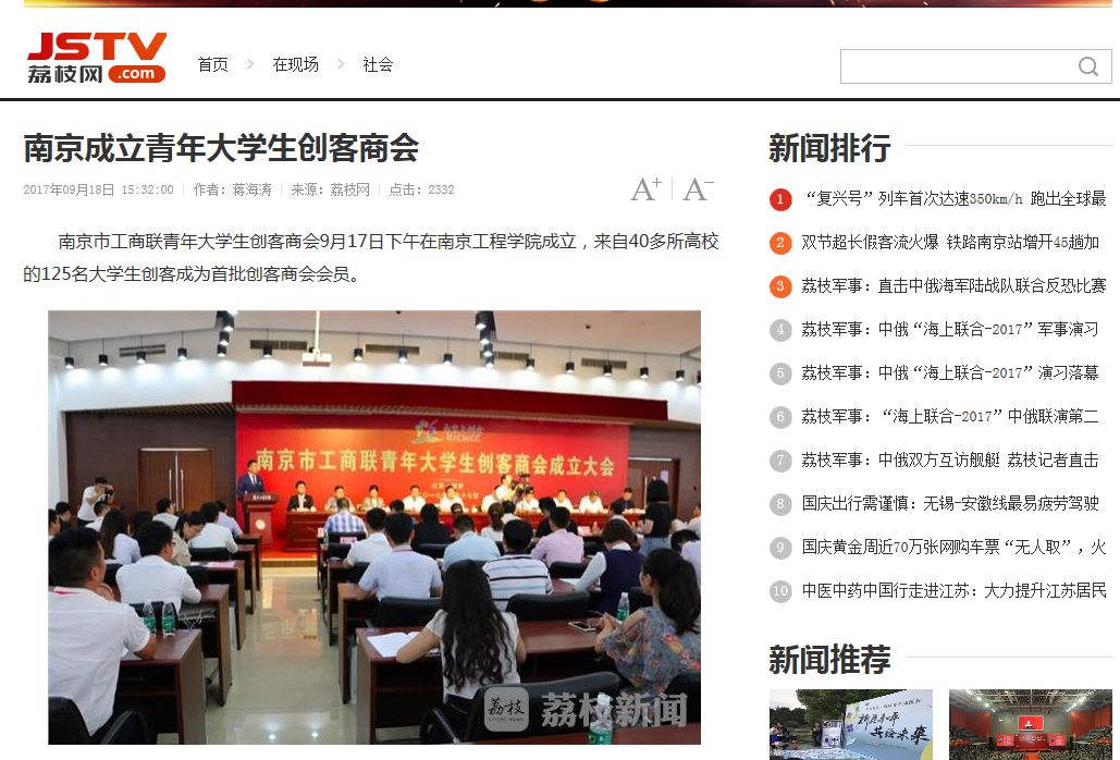 南京市工商联青年大学生创客商会9月17日下午在15vip太阳集团官网成立,来自40多所高校的125名大学生创客成为首批创客商会会员。