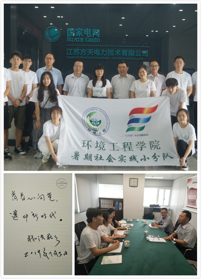 7月5日,在环境工程学院党总支书记颜萍带领下,分队成员们走进江苏方天电力技术有限公司,接受节能减排监控中心的专业知识培训,并将开展为期一个月的暑期社会实践活动。同学们将在老师指导下学习电厂运行与环保监测、锅炉脱硫、燃气-蒸汽联合循环等最新环保技术知识,并奔赴各基层单位进行项目化实训实践活动,采集电厂节能的实时数据,对高压沿线、变电站100米以内周边、学校、居民楼、医院等重点区域开展电磁辐射、噪声检测,并形成分析报告。
