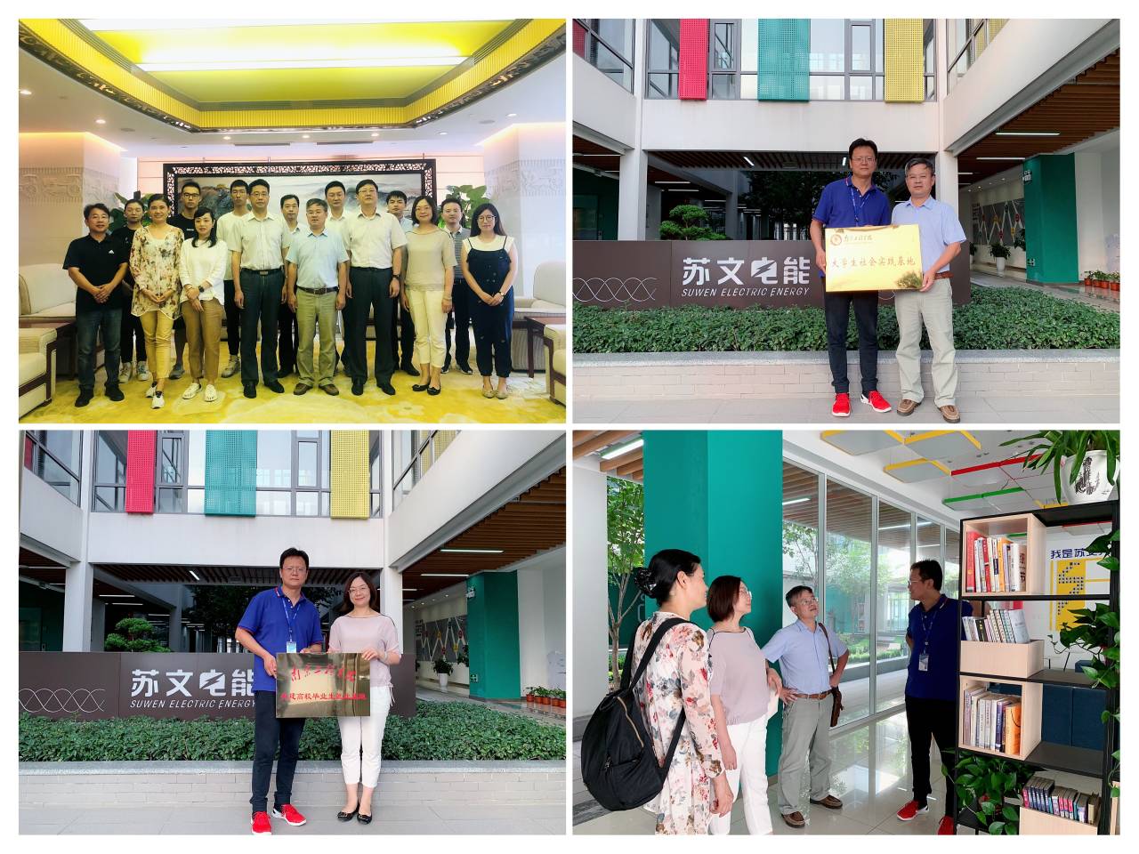 当天下午,芮新红书记及电力工程学院老师前往校友企业苏文电能科技股份有限公司考察交流。苏文电能董事长施小波带领老师们参观了公司,并详细介绍了公司的创办发展历程和运营状况。公司是集设计咨询、设备服务、安装建设以及智能运维为一体的国家级高新技术企业,走访过程中,师生们惊叹于苏文创业的武器——七剑文化。正是它,引领着苏文人狼性前行,勇作精兵,努力成为电能领域的品牌服务商。参观后,校企双方座谈,就后期聘请创业导师、开展实习合作等事项进行了深入交谈,并举行了就业基地与社会实践基地的挂牌仪式。