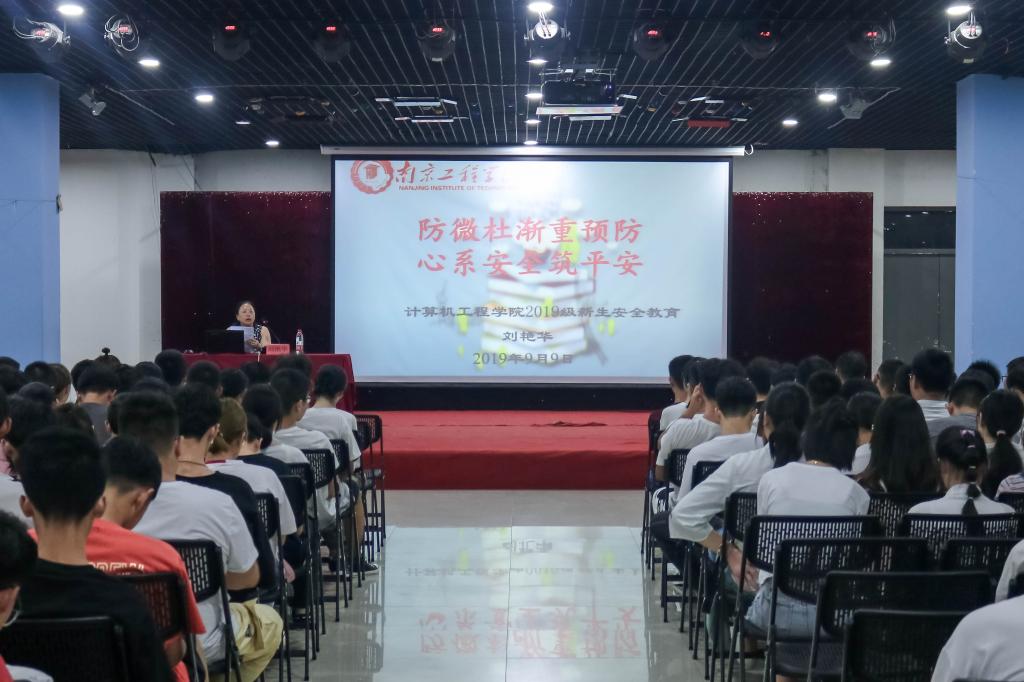 为增强新生安全意识,筑牢校园安全防线,共同创建平安和谐校园,9月9日晚,计算机工程学院在北区大学生活动中心开展了安全教育主题讲座。该院党委副书记、网络工程(嵌入式)191班第二班主任刘艳华担任主讲,学工办老师以及2019级全体新生参加了讲座。