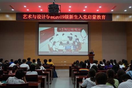 为切实做好2019级新生入学教育,积极引导新生树立正确的世界观、人生观和价值观,自觉争做中国特色社会主义的坚定信仰者和忠实实践者, 9月12日,艺术与设计学院邀请了学生工作处副处长给2019级新生上了入党启蒙第一课。