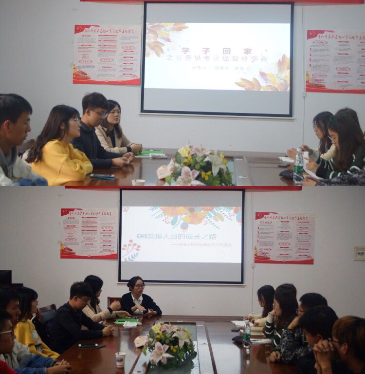 为进一步加强毕业生就业工作指导,引导学生树立正确的就业观,10月26日下午,环境工程学院召开“校友零距离”就业分享会。会议特别邀请了2018年考取公务员的水质141班陈昊昱、2019年考取江苏省选调生的环境152班席肖和从事多年EHS管理师的电力环保101班华燕静作报告。