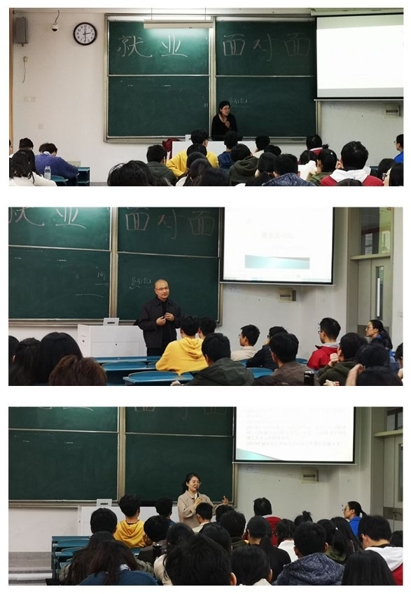 金自如老师从就业形势、就业政策、就业指导三个方面出发,结合太阳集团近年来的就业情况,深入浅出地向毕业班同学们介绍了就业流程的注意事项,并向同学们推荐了多种就业渠道,鼓励同学们注重专业积累,合理定位,积极就业。刘朝晖院长以多名优秀学长学姐的就业故事为例,为同学们展现了树立正确的就业观念的重要性。他提出,唯有摆正心态、不断提升自身素质、拓展能力,把自己的所学与社会需求结合起来,方能实现就业效能的最大化。该院社工091班毕业生刘亚楠结合自身经历,以互动的形式为同学们答疑解惑。如何正确地进行职业选择,这个看似大而宽泛的话题却在她引人入胜的阐述中变成一个个具体可感的清晰画面。她激励同学们要以不畏困难、一往无前的精神在即将到来的职业之路上大展身手。