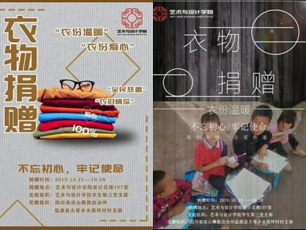 近日,艺术与设计学院党总支组织开展“衣份温暖,衣份爱心”扬帆暖冬行动,给四川凉山贫困地区的群众捐赠衣物,为宿迁皂河留守儿童送去礼物,以实际行动践行初心和使命,助推主题教育走深走实。活动中,该院与四川省凉山市彝族自治州盐源县大草乡水简坪村村支部、宿迁市皂河镇第二中心小学分别取得联系,并通过QQ、微信等多种形式向师生党员们发出倡议,倡议发出后立即得到了师生的热烈回应。学院通过张贴海报、新媒体等线上线下宣传手段,号召师生党员们参与进来,大家纷纷将自己的闲置衣物带到学校,捐赠现场涌动着浓浓的爱心,温暖无限。师生党员们以实际行动为偏远地区的群众贡献一份自己的力量,为留守儿童送去一份关爱和呵护。此次活动发扬了扶危济贫、奉献爱心的传统美德,师生以实际行动向需要帮助的群体给予了援助之手,为扶贫济困献出一份力量,践行了全心全意为人民服务的宗旨,也让广大师生切实感受到“不忘初心、牢记使命”主题教育的实际成效。
