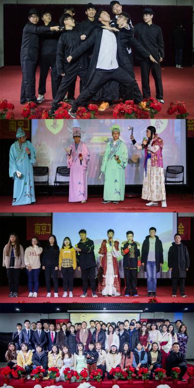 此次元旦晚会分为“往事犹可忆”、“风采正当时”、“未来亦可期”三个篇章,以丰富多彩、异彩纷呈的节目掀起一阵又一阵高潮。相声《K歌之王》、小品《四大才子之相亲大会》《罗密欧与朱丽叶》立足经典,巧妙改编原版,男扮女装的反串表演及诙谐幽默的情节让人捧腹大笑。走秀《遇见》,锦罗玉衣穿越古今,以绚丽的华服、青春动人的面貌彰显出当代大学生眼中的新时代、兴盛世。串烧《那些在南工程奔跑的花儿》、街舞《起舞青春》、舞蹈《护花使者》演绎出计工学子积极昂扬、奋发拼搏的青春风采。吉他演奏《等待的风》、现代舞《不如跳舞》、歌曲《她说,后来》相继登场,以青春气息唱响“计e”强音,用责任担当展示青年力量。莅临晚会现场的老师们也毫不逊色,孙大尉老师演唱《我像雪花天上来》,淋漓尽致地体现了老师们积极向上的精神面貌与凝心聚力向前进的决心。