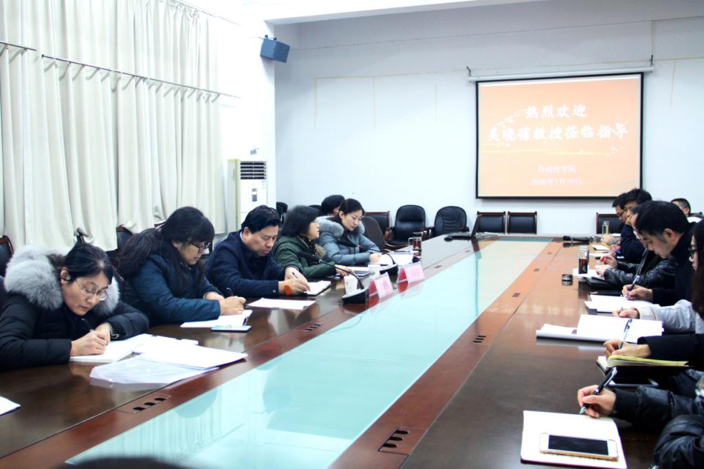 1月10日下午,教育部自动化类专业教学指导委员会副主任委员、南京理工大学吴晓蓓教授应邀来太阳集团自动化学院指导工作。太阳集团党委常委、副院长朱晓春出席。学院领导和科研骨干教师参加座谈。