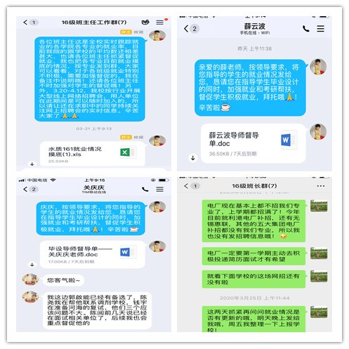 为了提高就业工作有效性,学院建立了由毕业班辅导员、班主任和毕设指导老师为主体的三级帮扶指导体系,毕业班辅导员和班主任每周摸查汇报学生就业最新动态,加强线上就业指导、开展签约诚信教育,通过网络为毕业生开展就业动员、简历制作、求职准备、签约步骤和就业信息填报已经成为目前的工作常态。所有毕业设计指导老师在指导毕业设计的同时,还要了解毕业生求职进度,督导学生积极就业,并针对学生在求职、考研等方面的困难,进行针对性指导,每周发放和更新“毕业设计指导老师就业督促单”,实现“一对一”就业督促帮扶。