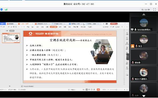 为了加强学生专业知识学习,提高系统设计能力,5月20日,能源与动力工程学院特邀南京玻纤院主任工程师暖通专业负责人许爱琴高工开展了以“空调系统设计浅析”为主题的线上直播学术讲座,该院200多名师生聆听了讲座。