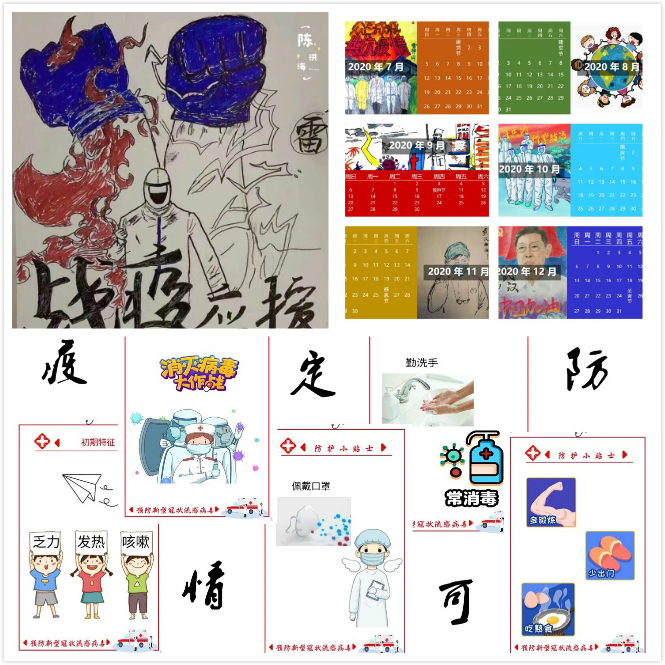 殷忧启圣,多难兴邦。为引导广大青年与时代同行,与国家同行,共克时艰,学院各团支部依托网络平台,开展了“疫情知识抢先答”“以‘艺’助‘疫’”“病毒预防小贴士”“制作2020专属校历”等活动,同学们怀着“去不了前线也要为抗‘疫’尽一份力”的想法,写下一句句对祖国、对抗“疫”战士、对学校的祝福,并通过照片拼接成一个个充满寓意的形状,表达了大家抗击疫情的信心与决心,对辛苦付出的无名英雄的敬意。