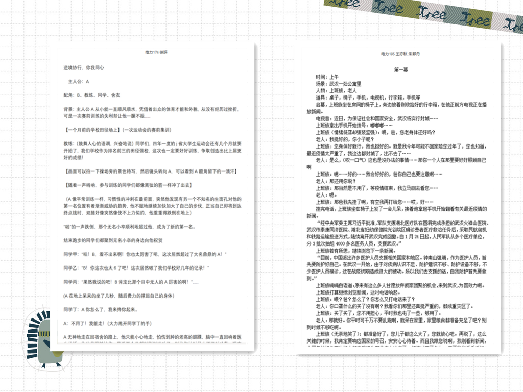 为深入了解大学生的内心困惑以及关注的热点问题,该院于5月26日至5月30日开展了“小剧场,大世界”心理情景剧剧本创作大赛。来自电力195王亦秋和朱郅丹两位同学用剧本《武汉的公寓》,生动地讲述了疫情期间平凡医护人员家庭里的不凡事,他们的文字有血有肉,情感十分丰富,淋漓尽致地体现了当代青年的爱国情怀。而来自电力174的徐妍同学借剧本《你我同心》,描述了参加体育比赛的主人公,在遭受挫折后的心理变化和成长,并将同学间、舍友间团结互助的朋辈力量展现在她生动的文字里。“我的剧本是真实事件的改编,很开心能分享我的经历,同学之间应当和善友爱,团结就是力量”徐妍同学如是感慨。此次的剧本创作大赛,让同学们从小小剧本中收获满满,帮助大家更好地思考如何充实自己的大学生活,学会与人交往,享受属于自己独特的大学生活。