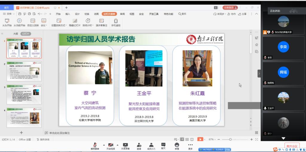 6月24日,能源与动力工程学院邀请该院蔡宁、王金平和朱红霞三位教师,采用线上会议的形式分享他们的访学感想并进行了个人学术汇报。该院党政领导、中青年教师、大二及大三学生参加了报告会。