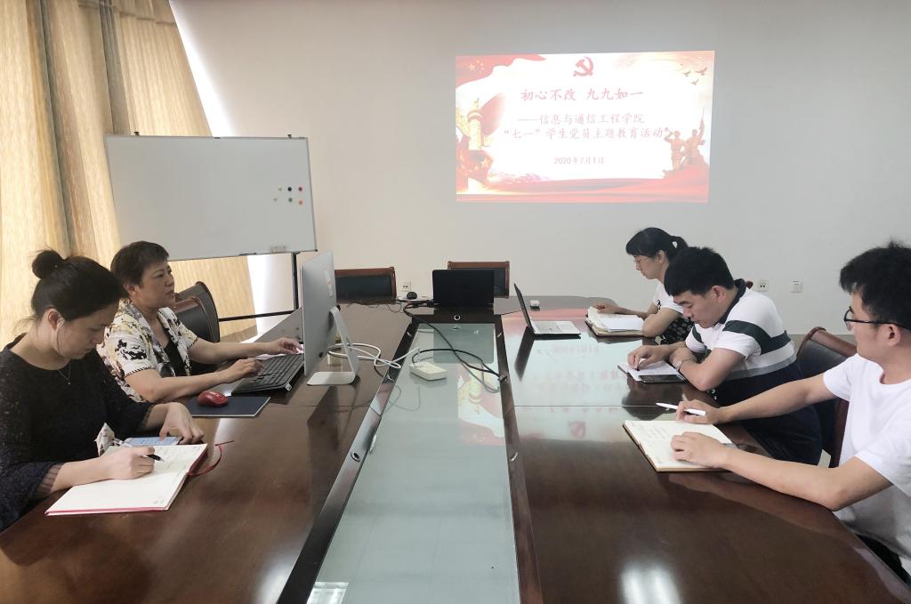 为纪念中国共产党建党99周年,信息与通信工程学院于7月1日在腾讯课堂和信息楼C308会议室举办了以“初心不改 九九如一”为主题的“七一”学生支部主题教育云活动,学院全体学生党员、学生党支部书记等参加了此次活动,活动由学院党委副书记张兴丽主持。