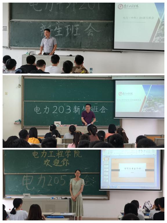 对于未来的学习要求,电力202班第二班主任、校党委常委、宣传部部长陈建华老师告诫同学们要远离游戏,未来电力的专业课程学习难度大,要认真对待,学会合理安排好学习进修以及休闲娱乐的时间。输电202班第二班主任、电力工程学院副院长李军老师指出当今社会应用型人才与学术型人才同样重要,南工程培养的就是优秀的应用型人才,同学们以后守护的是万家灯火,造福的是一方百姓。输电201班第二班主任、电力工程学院院长助理张小莲老师要求同学们进入大学一定要好好学习,不要放松对自己的要求,同时认清自己将来的工作和价值,找到适合自己的岗位。智网201班第二班主任、电网信息系主任李干林老师通过分析智能电网历年的考研率,帮助同学们清晰认识到,只有明确学习目标,掌握学习方法,才能夯实专业基础,提升专业技能。