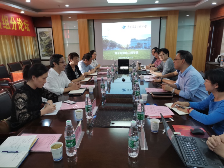 9月30日,信息与通信工程学院来到南京信息工程大学电子与信息工程学院进行调研,南京信息工程大学教务处副处长常建华,电子与信息工程学院院长张治中以及各系主任出席了交流会。会上,张治中院长就该院发展历程、思想政治建设、专业建设、学科建设、招生与就业等各方面基本情况进行介绍,院长助理就该院各方面具体情况进行了详细的交流分享和成果展示。教务处副处长常建华就南信大的工程教育专业认证、课程思政、教育教学研究等方面的相关工作做法进行了交流分享。院长包永强和党委书记陈建红对南信大的热情接待表示感谢,并分别就学院基本情况和党建工作进行了细致介绍。双方各对口领导就人事聘岗、学科科研、人才培养、专业建设、工程教育专业认证、学生就业等方面进行了深度的交流讨论。