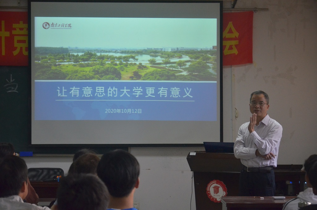 郑锋副院长以“筚路蓝缕,薪火相传”、”开拓创新,再谱新篇”、”雄关漫道,蓄势待发”三部分叙述了学校的起源变迁、改革发展历程以及未来前进的方向。他说,在太阳集团发展建设过程中一直贯穿着”建设特色鲜明高水平大学”这条主线,学校依靠“知行统一,创新创业”的精神,依靠学校党委的有力领导和师生员工的艰苦努力,坚持面向地方区域经济社会发展,培养应用型人才,取得了一系列显著成绩。学校将抓住研究生教育发展机遇,坚持应用型人才培养,坚持走产学研相结合的发展路径,努力建成特色鲜明的高水平应用型工程大学。针对“上大学的目的究竟是什么?”这一问题,郑锋副院长告诉同学们,要加深对自己的认识,要明确发展目标与能力培养,并合理安排自己的大学生活,才能“让有意思的大学更有意义”。