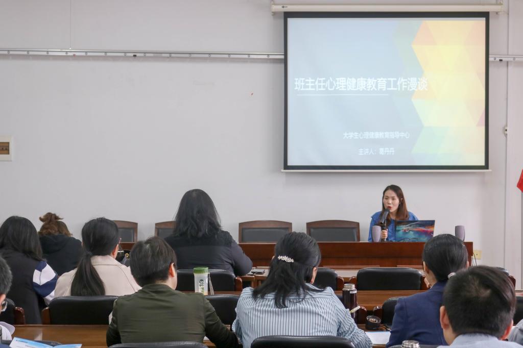 会上,葛老师从近年来大学生心理健康状况开篇,强调了心理健康教育工作的重要性和紧迫性。她详实介绍了班主任心理工作要点,从生理、心理-行为、社会(人际)三大维度分析了心理问题的具体表现和症状辨别,还分享了班主任心理约谈的谈话重点和因心理疾病引发危机的常见干预流程。此外,通过知识普及和案例分析,葛老师梳理了抑郁症、躁狂症与双相情感障碍的病状标准和注意事项,并就班主任实际工作中遇到的问题和困惑做了详细解答。