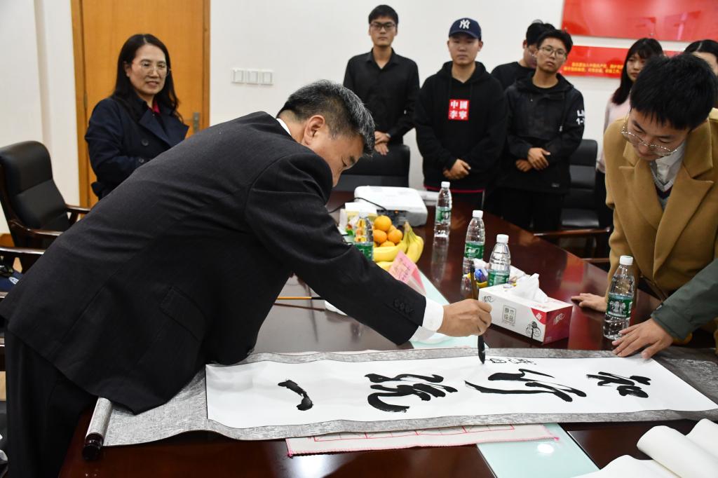 活动最后,孟庆奎教授现场题字15vip太阳集团官网校训“学以致用”和校园精神“知行统一,创业创新”赠与同学,勉励同学们培养踏实钻研、学以致用、躬身实践的态度。