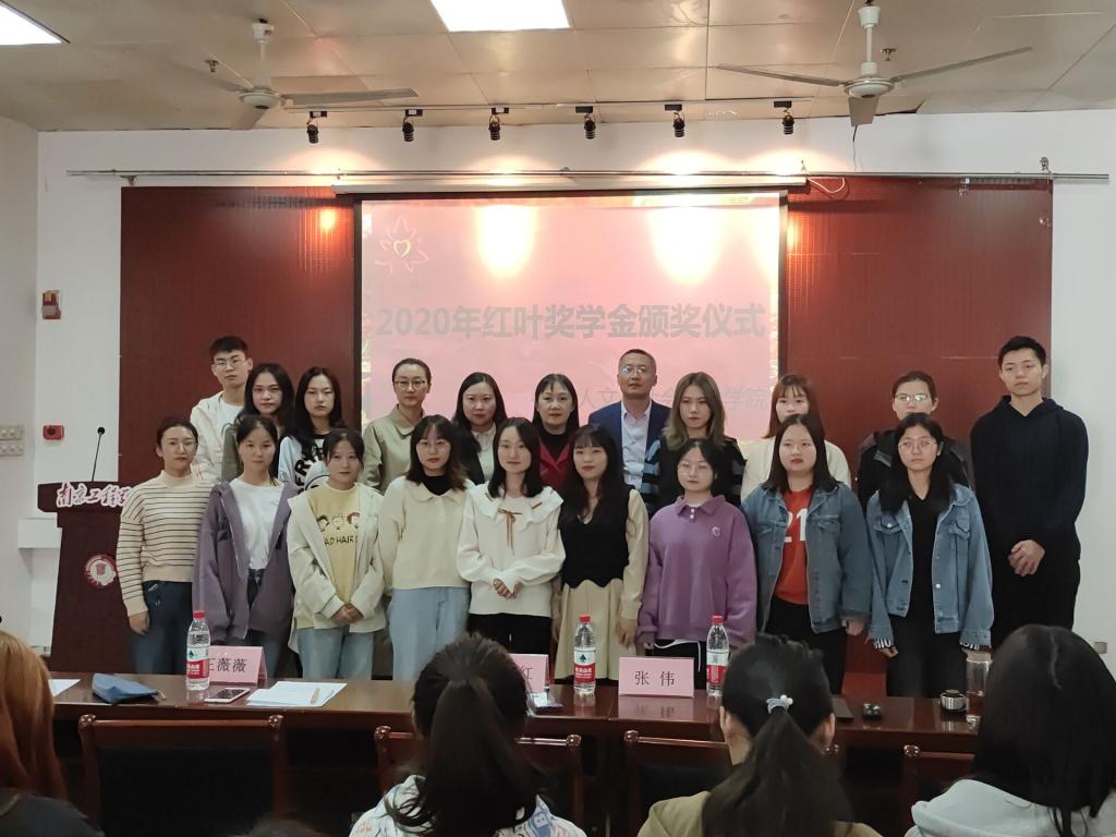 11月4日下午,人文与社会科学学院2020年红叶奖学金颁奖仪式在大学生就业创业多功能厅举行,16名优秀学生代表获得“红叶创业奖”和“红叶实践奖”奖励。校学生工作处、人文与社会科学学院及南京红叶社会工作服务社负责人出席了颁奖仪式。