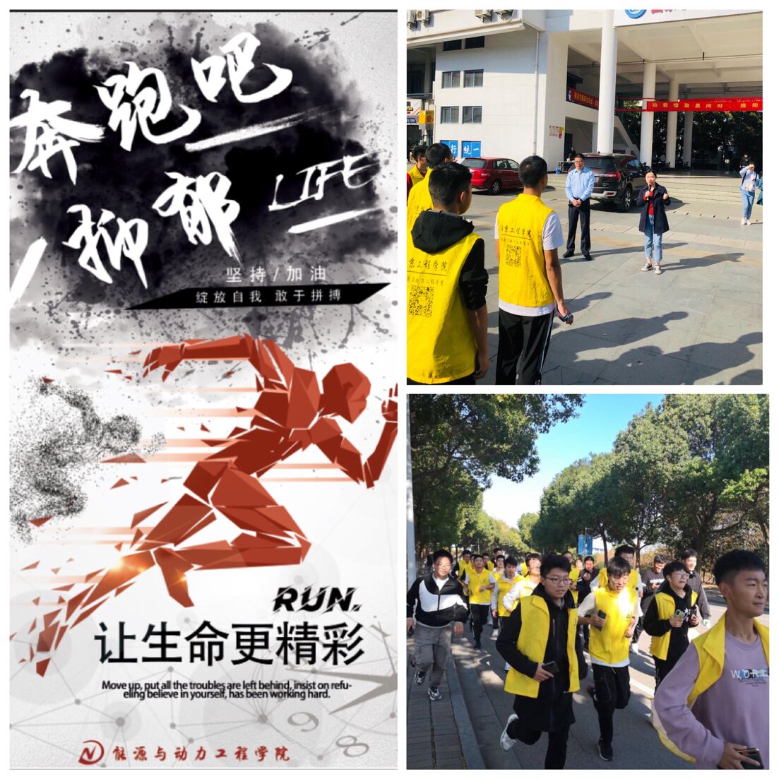 为引导大学生关注心理健康,提高对抑郁症的认识,11月11日,能源与动力工程学院组织开展了以“奔跑吧,抑郁”为主题的公益跑活动,用健康的运动方式,呼吁同学们关注关爱抑郁症人群。校心理健康中心主任、暖通202班第二班主任李宁,该院党委副书记陈培杰,以及近100名同学参加了此次活动。