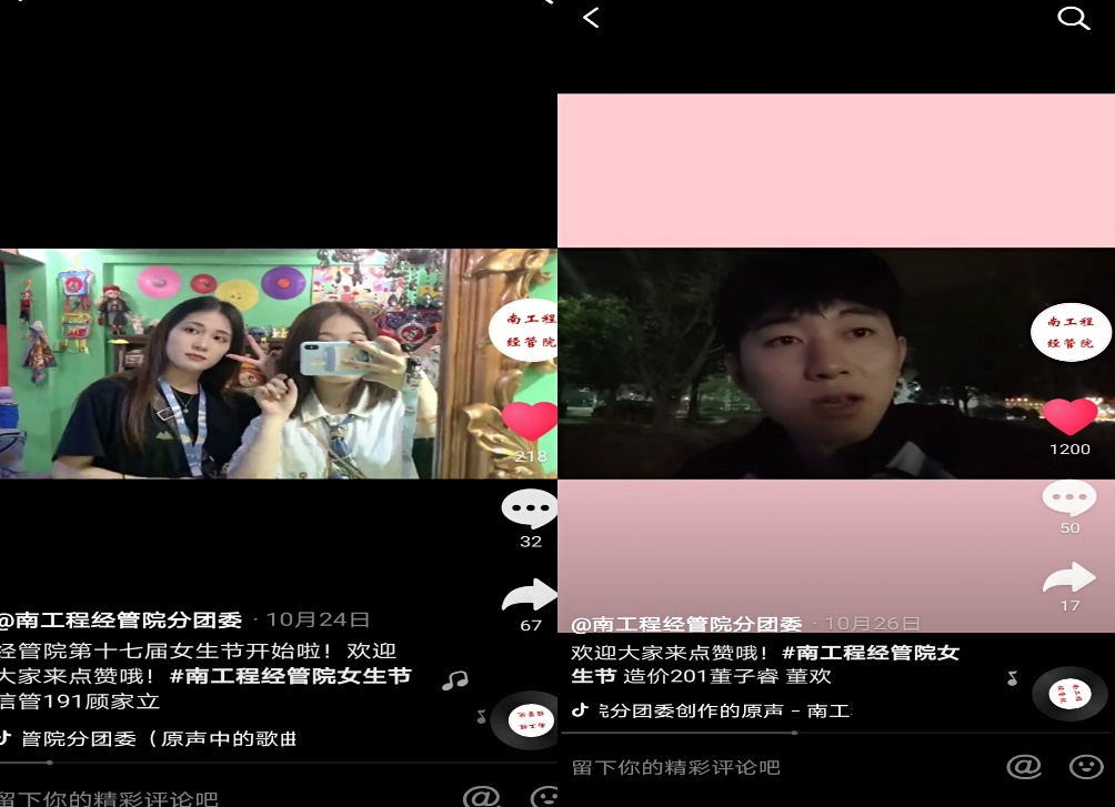 为增进良好互动,营造愉悦氛围,促进身心健康,学院积极组织抖音短视频比赞活动。同学们拍摄剪辑后,上传到经管院分团委抖音公众号,视频中有生活美照、宿舍搞怪、外出游乐以及男生送给女生美好祝愿等,视频内容丰富、形式独特、新颖有趣,展现了大学生的青春张扬与美好年华。在视频上传后,同学们积极为自己喜欢的视频点赞并留下祝福。按照点赞排名,造价201的董子睿与董欢获得本次活动的冠军,二等奖由信管191的顾家立,国贸202周吴燕、周轩、祝媛、周雪颖获得,三等奖则颁发给了信管201毕翔宇、常瀚伦、江菊、张贺暄,信管201张佳佳,造价202陈薇薇。
