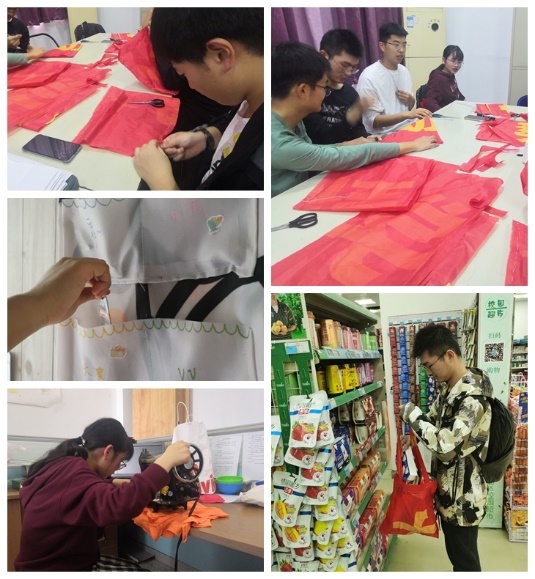 活动的发起人、能动学院志愿者工作部曹倩洁发现:在各大高校,作为校园文化活动宣传的手段之一,鲜红的横幅在其中占据了重要的位置,已经成为了一道不可或缺的风景。然而每次活动过后,横幅就作为废弃用品被丢在一旁,甚至直接作为垃圾处理。“我们对此进行了详细的调查研究,发现市面上大部分的横幅材料主要是合成纤维,这种材料主要是从石油中提取来的,自然降解的难度非常大。”为什么不让这些横幅“变废为宝”呢,曹倩洁发动学院的志愿者们合伙成立“废物再造”项目小组,着手对废旧横幅进行一系列的开发、设计及利用。经过多次头脑风暴,项目成员设计图纸、打样、裁剪、拼接等,制成样式各异的购物袋、手机袋、收纳袋、文件袋等用品,并尝试了“购物袋进超市”“手机袋进教室”“收纳袋进宿舍”等活动。“每次活动基本都会用到横幅,但是几乎用一次就丢了,其实那些布还很新,又不可降解,太浪费了!我们的再利用,能够延长横幅的‘武力值’,是一个挺有效的方式,我们将继续研究该项目,为美丽校园建设做一些菲薄的努力。”参加此活动的一位同学信心满满地表示。