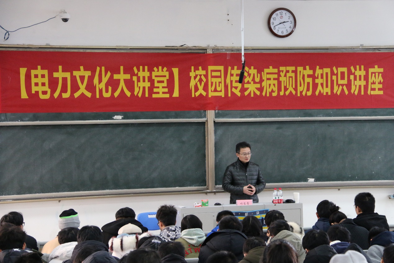 为加强学生的传染病防护意识,培养良好的卫生习惯,12月16日下午,电力工程学院在东202教室举办了以“校园传染病预防知识”为主题的电力文化大讲堂。讲座邀请了校门诊部健康教育指导中心叶长青主任担任主讲,全院200余名寝室长参加了讲座。