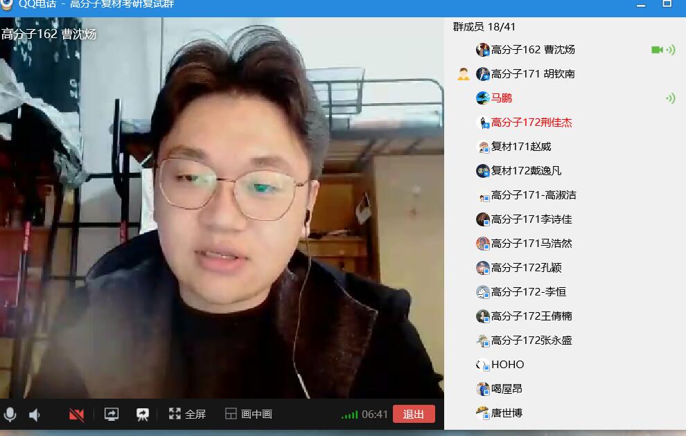 为帮助考研同学更好地应对复试中的常见问题,提升复试成功率,材料科学与工程学院近期邀请朱珠、顾志远、曹沈炀、史皓峻等在读硕士校友代表分专业为2017级考研上线同学开展复试视频交流会。该院学工负责人、辅导员及百余名考研同学参加了交流会。