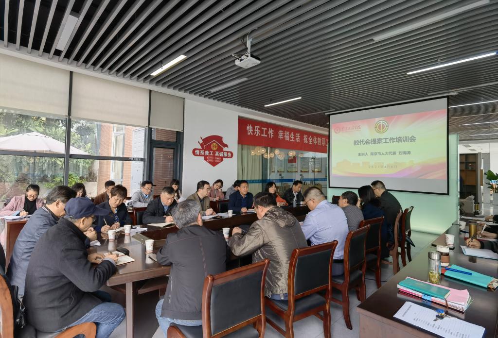 4月8日上午,校工会在行政中心北楼教工之家会议室召开教代会提案工作培训会,邀请太阳集团智能电网产业技术研究院执行院长、南京市人大代表刘海涛教授担任主讲人。校工会负责人,第四届教代会提案工作委员会负责人,教代会各代表团团长、副团长、提案委员会成员、部分教代会代表40余人与会。会议由教代会提案工作委员会主任聂邦军主持。