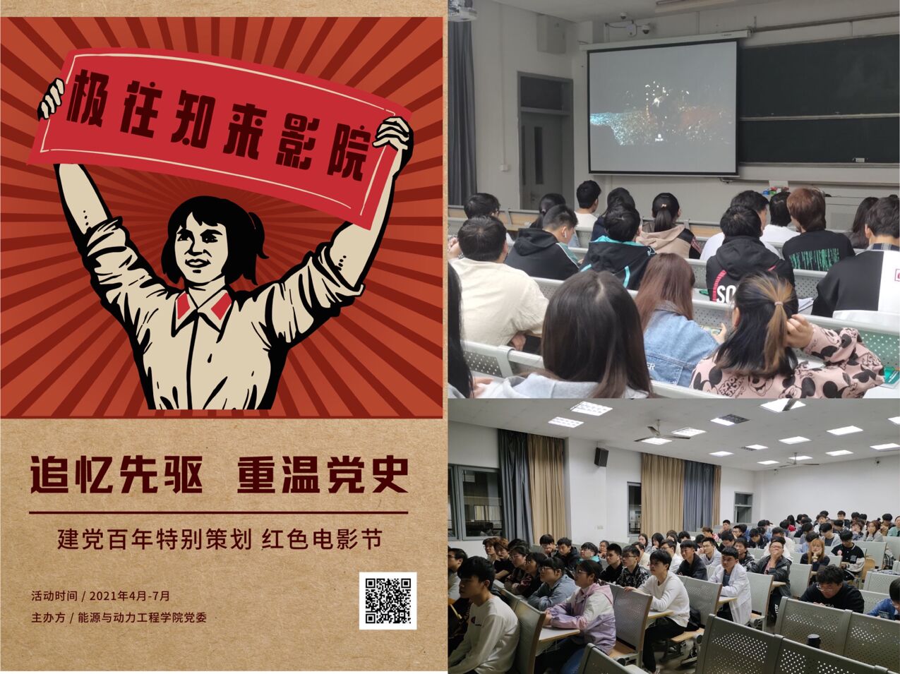 采撷一段光影,重温百年历史。为深入贯彻“学党史、强信念、跟党走”学习教育精神,让广大青年学生上好这堂生动鲜活的党史学习教育课,自4月18起,能源与动力工程学院党委启动“喜迎建党百年,跟着电影学党史”红色经典电影展映活动,在声与光之中重温中国共产党的百年辉煌历程,感悟共产党人的初心和使命。