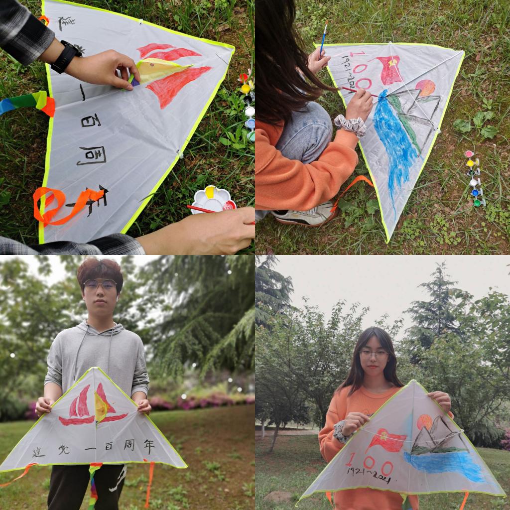 在风筝创作环节,同学们充分发挥奇思妙想,纷纷拿出颜料和画笔,用绘画表达自己对中国共产党的热爱与赞美。在完成作品后,同学们乘着风势,随风奔跑,一只只风筝飞向天空,翩翩起舞,争奇斗艳。通信181班的周亚丽说“我用党徽的标志作为我们这次放飞的图案不仅代表了我们南工程学子个人梦想与伟大中国梦的结合,又是对爱党、爱国、爱校的家国情怀的放飞,更是对红色文化的传承与发展。”本次活动不仅促进了团队间的交流与合作,给师生传递出迎难而上的信心与力量,更重要的是同学们将想对党说的话写在风筝上,让这份热爱之情以文雅而优美的方式相互交流,在表达与思考中进一步体味建党100周年的历史意义,用寓教于乐的方式让同学们更加熟知党史,传承红色基因。