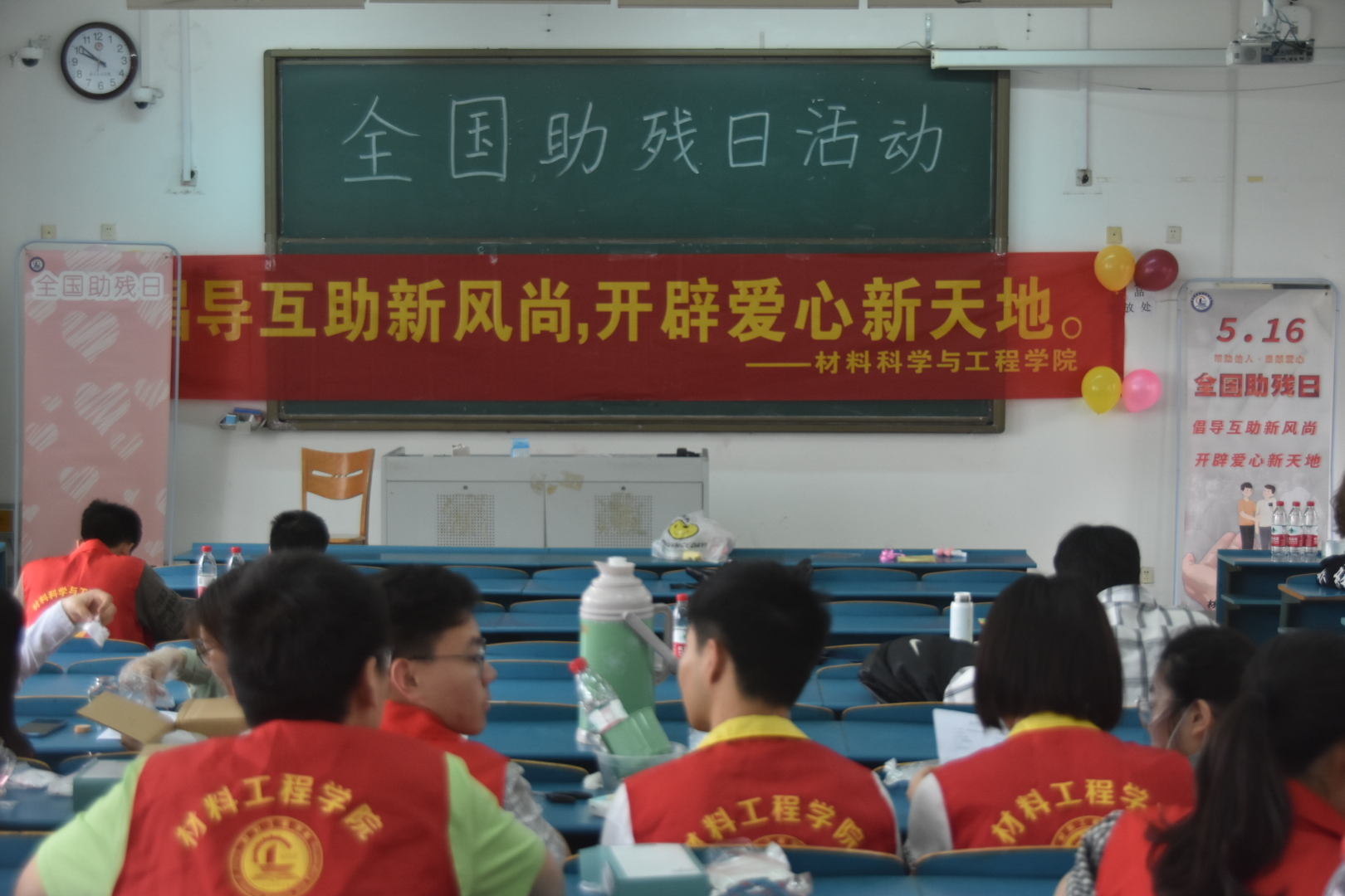 为宣传关爱残疾人,在大学生中倡导扶残助残的良好社会风尚,营造和谐文明进步的校园氛围,在第三十一个“全国助残日”来临之际,材料科学与工程学院青年志愿者团队联合东南大学化工学院至善党支部于5月16日在西C201教室,开展以“关爱残疾人,温情满校园”为主题的“全国助残日”系列活动。