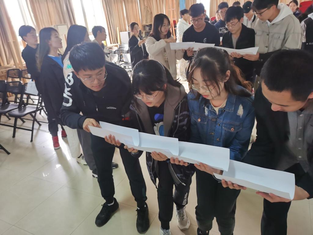 “我是来自江苏无锡的沈乘风”“我是沈乘风旁边的来自江苏淮安的蒋乐妍”“我是沈乘风旁边的蒋乐妍旁边的来自江苏南通的许佳伟”……师生心理团辅活动在小组自我介绍与介绍别人的“名字接龙”游戏中开始了,短短几分钟,师生之间就变成了知根知底的战友。“没想到平时严厉的王老师也如此平易近人。”功材191班的蒋瑶同学说道。在“毕力同心”“口授心传”“三心二意”等活动,师生双方作为平等的主体,在“我——你”关系中促进师生有效交往。