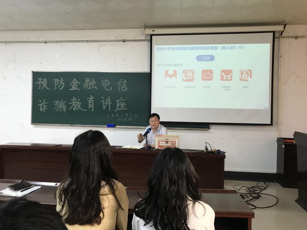 为进一步提升学生网络安全意识,筑牢防诈骗的“防火墙”,引导学生树立科学、理性、健康的消费观,5月10日,工业中心特邀校保卫处处长濮天伟在基础实验楼B114教室做“预防金融电信诈骗”主题讲座。讲座由中心学生工作负责人主持,师生共计150余人参加了活动。