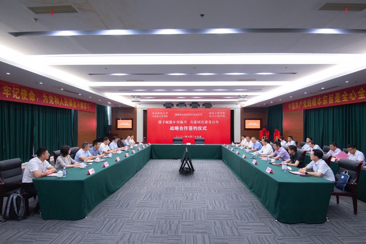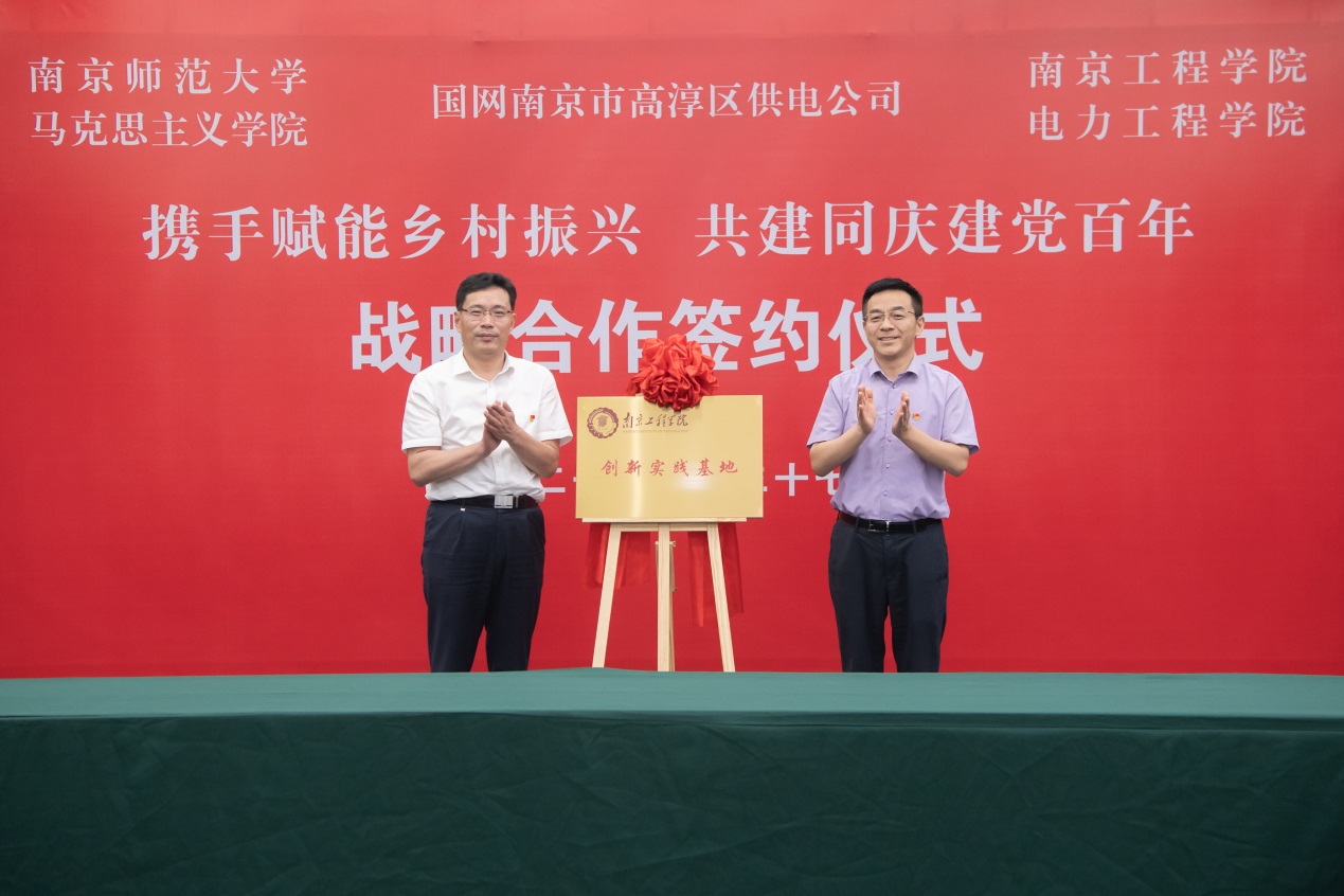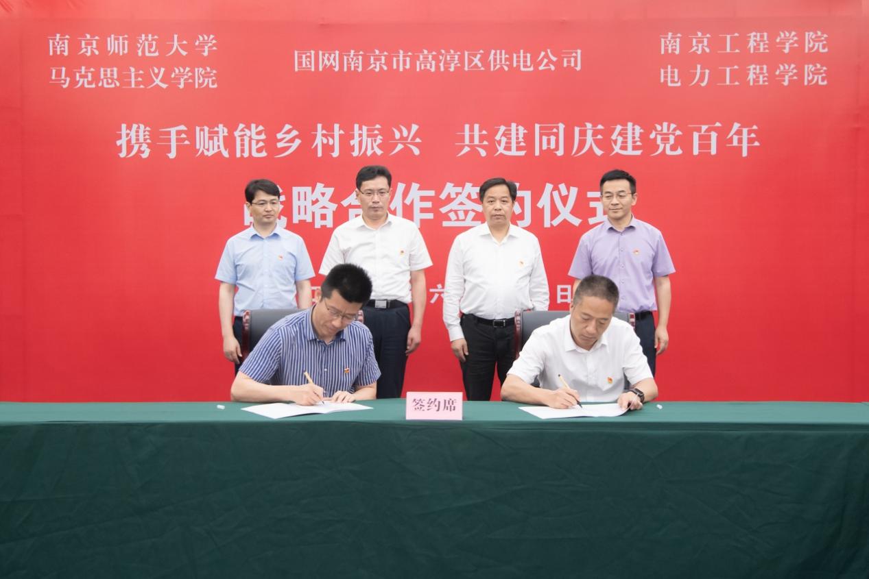 6月27日下午,国网南京市高淳区供电公司主办,太阳集团电力工程学院、南京师范大学马克思主义学院共同参与的“携手赋能乡村振兴 共建同庆建党百年”合作签约和共建基揭牌仪式在高淳供电公司举行。自此,三方正式携手,以实际行动迎接中国共产党建党100周年,助力“双碳”目标、乡村振兴战略、能源互联网战略在高淳落地实践,加快院校高水平应用型人才培养和教学科研质量提升工程。