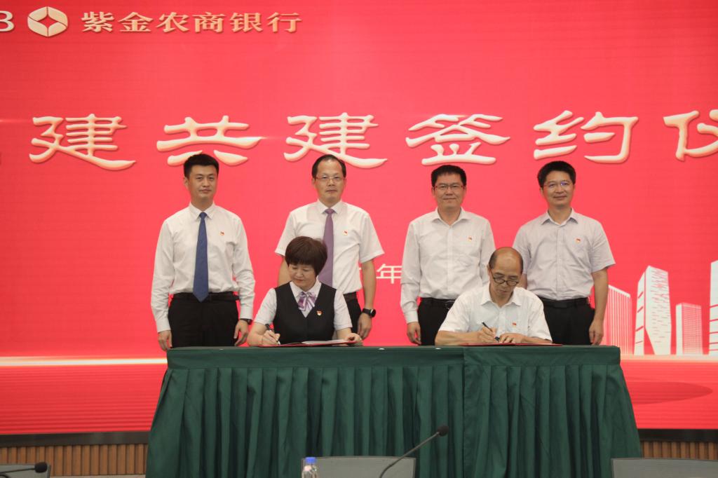 7月2日,校党委副书记濮励杰,党委常委、组织部部长朱松青带领经济与管理学院党委班子及全体党支部书记走进江苏紫金农商银行股份有限公司,开展经济与管理学院党委和紫金农商银行江宁支行党委的党建共建签约活动。签约仪式由紫金农商银行王清国副行长主持。