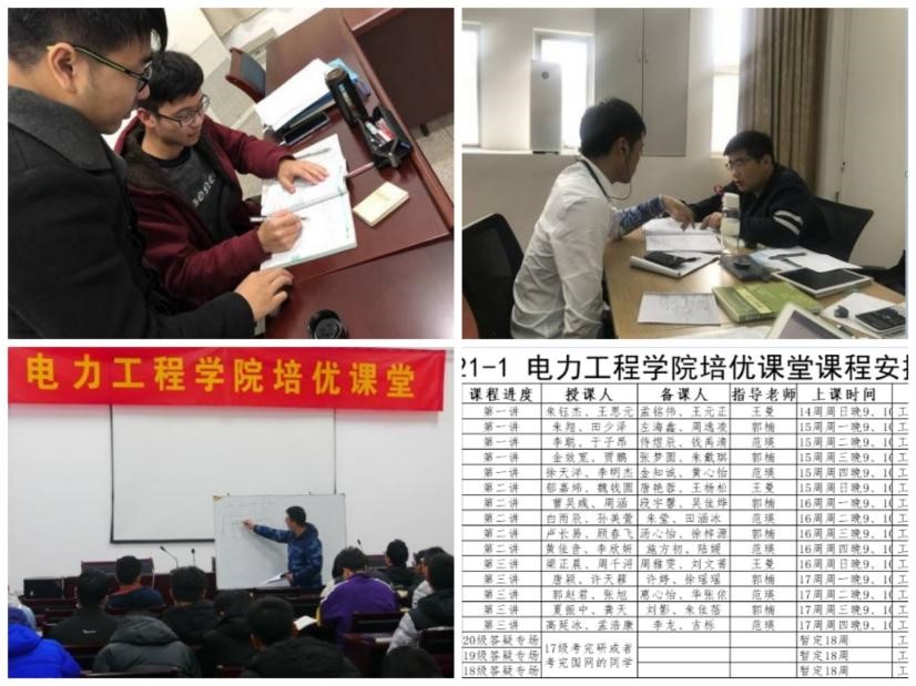“培优课堂”是电力工程学院党委以党风建设促学风建设的一次探索、是学院学风建设的推进器,也是发挥学生党员先锋带头作用的大舞台。自从设立“培优课堂”以来,学业方面有困难的学生就成了学生支部党员们关注的重点,为了让帮扶收到实实在在的效果,学生党员会主动联系专业指导老师,通过在党群“1+X+Y”帮扶小组中主动授课的方式帮助学困生。授课前,学生党员都要针对相关科目知识点进行备课,备课过程中,他们经常向专业老师请教如何巩固相关知识点、解决难点,以确保培优课堂的授课质量。有数据统计显示,“培优课堂”设立以来,共有学生党员119人参与帮扶,帮扶的学困生中,40%以上同学的智育成绩明显进步。
