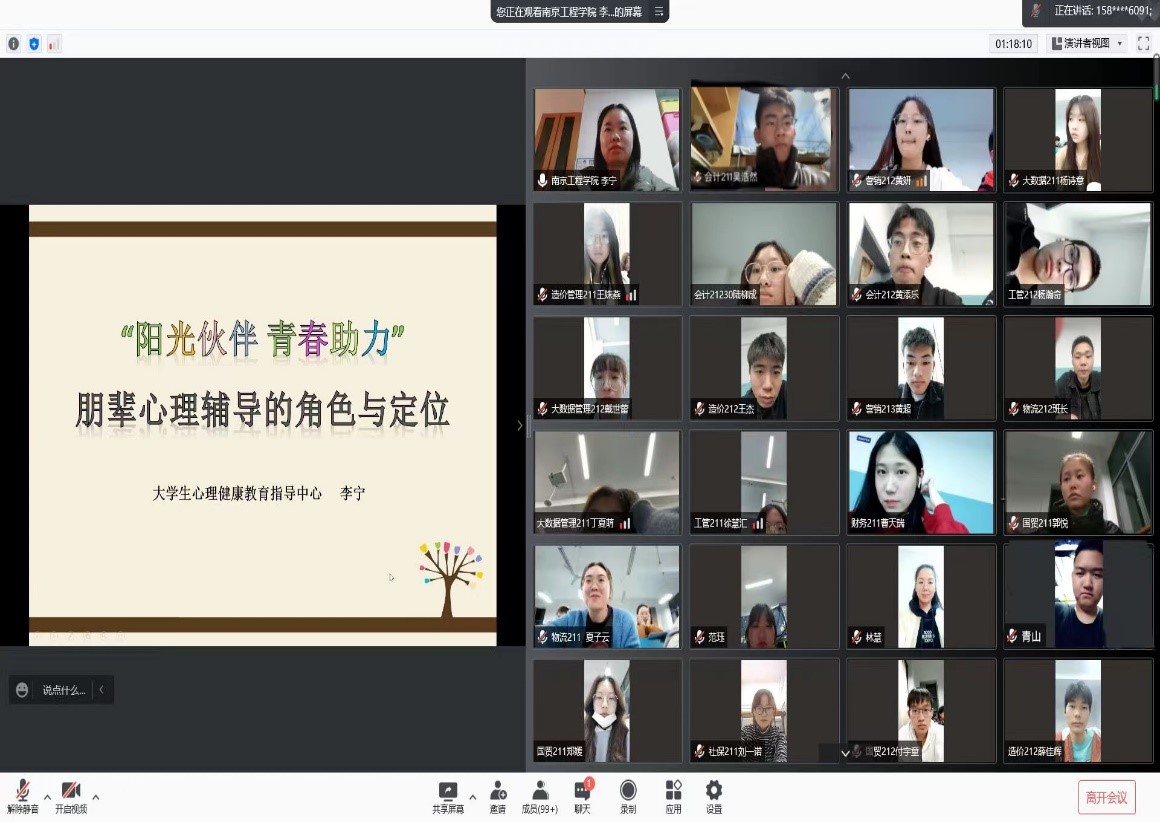为更好地开展朋辈心理辅导,让新生正确认识心理问题,经管学院开展了以“阳光伙伴,青春助力:朋辈心理辅导的角色与定位”为主题的心理讲座,特邀校大学生心理健康教育指导中心的李宁老师作为主讲。李宁老师从心理中心的全面介绍、心理委员的工作职责与原则、心理委员工作对象与特征、高风险行为的识别与应对四个方面与大家分享了朋辈心理辅导的角色与定位,她希望心理委员们在面对同学心理问题时,能恰当地安慰同学,用正确的方法疏导他们的心理问题,用尊重、共情与真诚做同学们的阳光伙伴。心理委员们为这场干货满满的讲座点赞,并表示一定会通过科学的方法缓减同学们的心理压力,并懂得识别班级同学的异常情况,真正能够及时有效地帮助同学。
