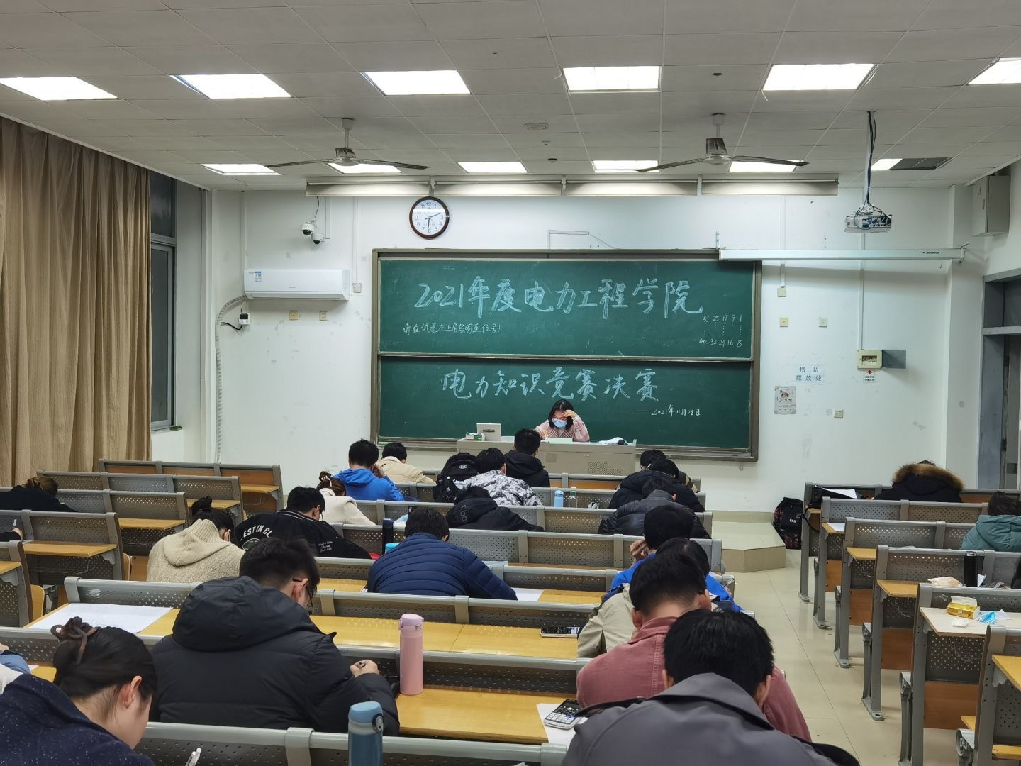 近日,电力工程学院举办的以“电力点燃智慧 知识照亮人生”为主题的2021年度电力知识竞赛在教学楼东馆顺利举行。通过电力知识竞赛这样一项具有知识性、实用性、参与性和的竞赛活动,激发全体同学对电力知识的兴趣,促使同学们勤奋好学、拼搏进取,提高同学们的专业素质,促进我院优良学风的形成,同时帮助全体同学提前熟悉并模拟国网考试的相关流程。