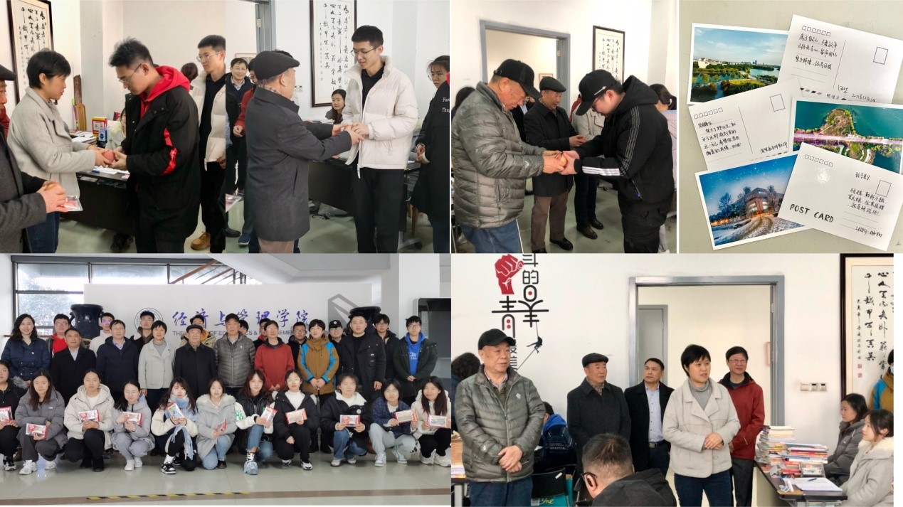 张焱院长代表学院全体老师为即将参加考研的同学们送上问候与鼓励,她勉励大家越是临近考试,越要坚定信心、坚定信念、全力以赴,同时叮嘱同学们要关注天气变化,保重身体,在冲刺阶段注意饮食健康,积极调整作息和心态,以“轻装上阵”的姿态争取最好的结果。拿到礼包的同学们很受鼓舞,人力181班的夏伟开心地说道:“收到文具福袋和祝福明信片,我特别感动,学院领导和老师太暖了!我一定全力以赴,不辜负自己,用优异的成绩回报学院领导和老师的关心!”