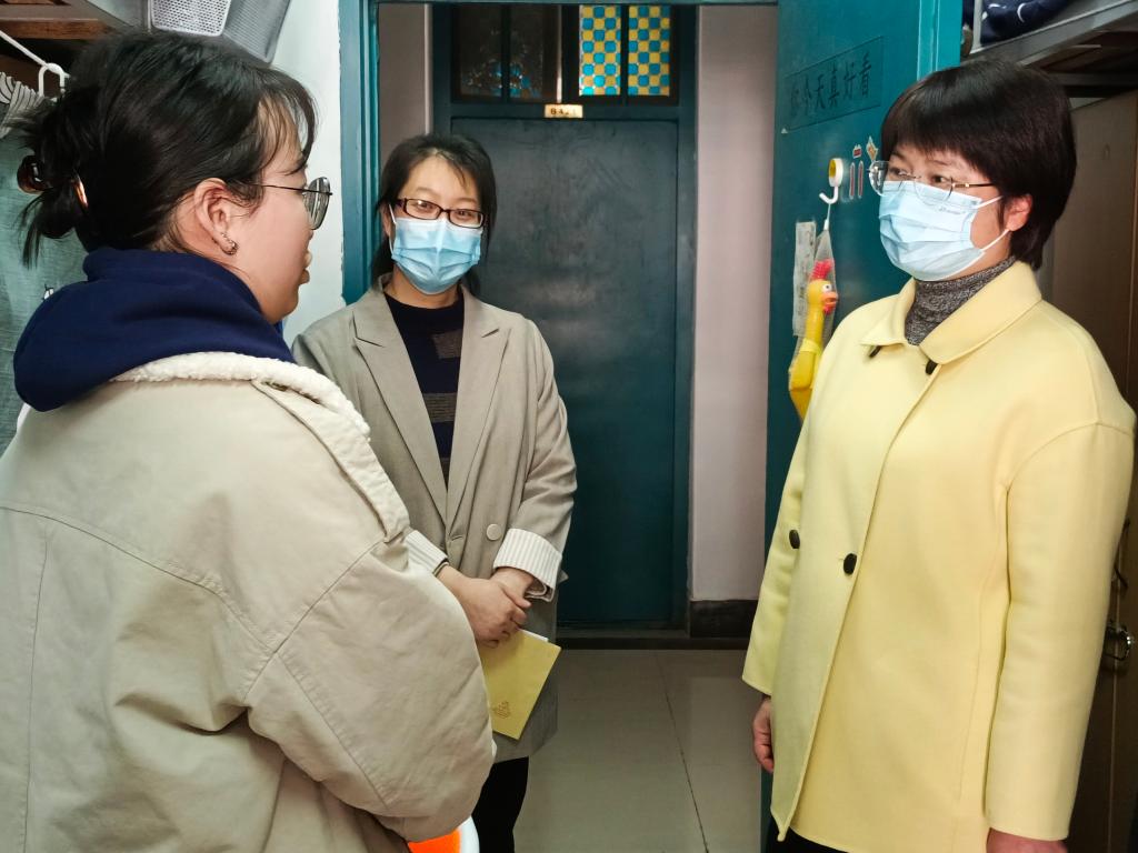 一进入宿舍,周玉霞书记与同学们亲切交谈,“寒假过得怎么样,刚回到学校还适应吗?”“你的家乡是哪里的?”“毕业设计进展如何啊?”“考研成绩怎么样?什么时候复试”……她详细了解同学们返校后的学习、生活情况,耐心解答同学们在学习和生活中遇到的困惑,并鼓励同学们尽早明确日后的发展方向,积极落实工作。周书记表示,母校永远是大家最坚实的后盾,大学生活剩下短短一学期的时间,希望同学们能够珍惜校园美好生活,充实愉悦的过好每一天,给自己的大学生活交一份满意的答卷。胡晓清副书记嘱咐毕业生要调整好自己的心态,在忙于毕业设计及各种考试的同时也要注意劳逸结合;未就业的同学及时关注就业网上的相关就业信息,根据自己的专业情况,把握机遇,积极就业。