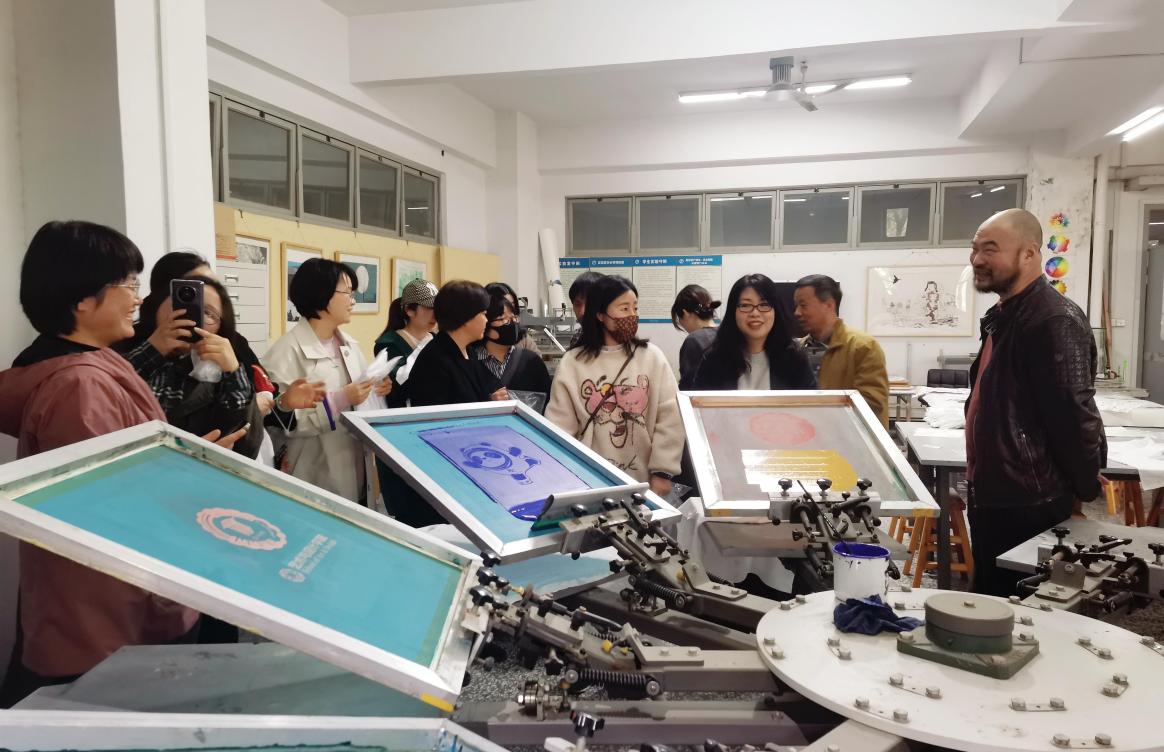 丝网印刷术的前身是起源于中国的传统印染,距今已有2000多年的历史。近日,一堂别开生面的中国传统技艺实践课正在艺术与设计学院天印工作室内展开。为了庆祝第112个国际“三八”妇女节,艺术与设计学院分工会特邀许正人教授为学院女教师讲授、演示传统丝网印刷术,并指导女教师们上手实践,印制自己喜爱的T恤。