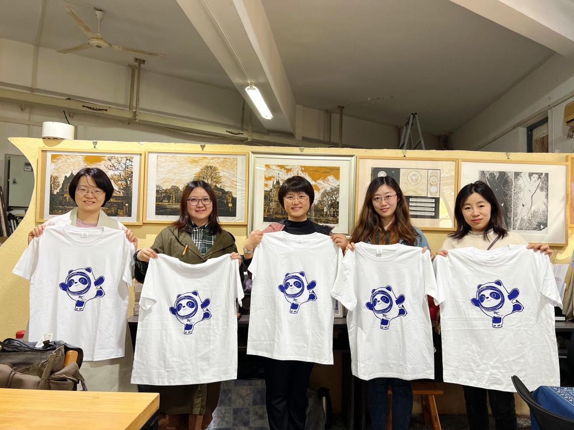 “我也有一件最近火出圈的冰墩墩了!”参与老师开心地展示自己的印染作品:“我们领略了丝网印刷的魅力,越发感受到传统文化传承与创新的重要性,今后也会在课堂中给同学们弘扬和宣传传统文化!”本次三八节活动的举办发挥了艺术与设计学院的特色,增强了艺设院教师对于非遗文化的认识,将传统文化融入校园,是中国传统文化和现代教育的有机结合,赋予传统技艺更多的时代内涵,让丝网印刷的技艺文化历久弥新、源远流长。