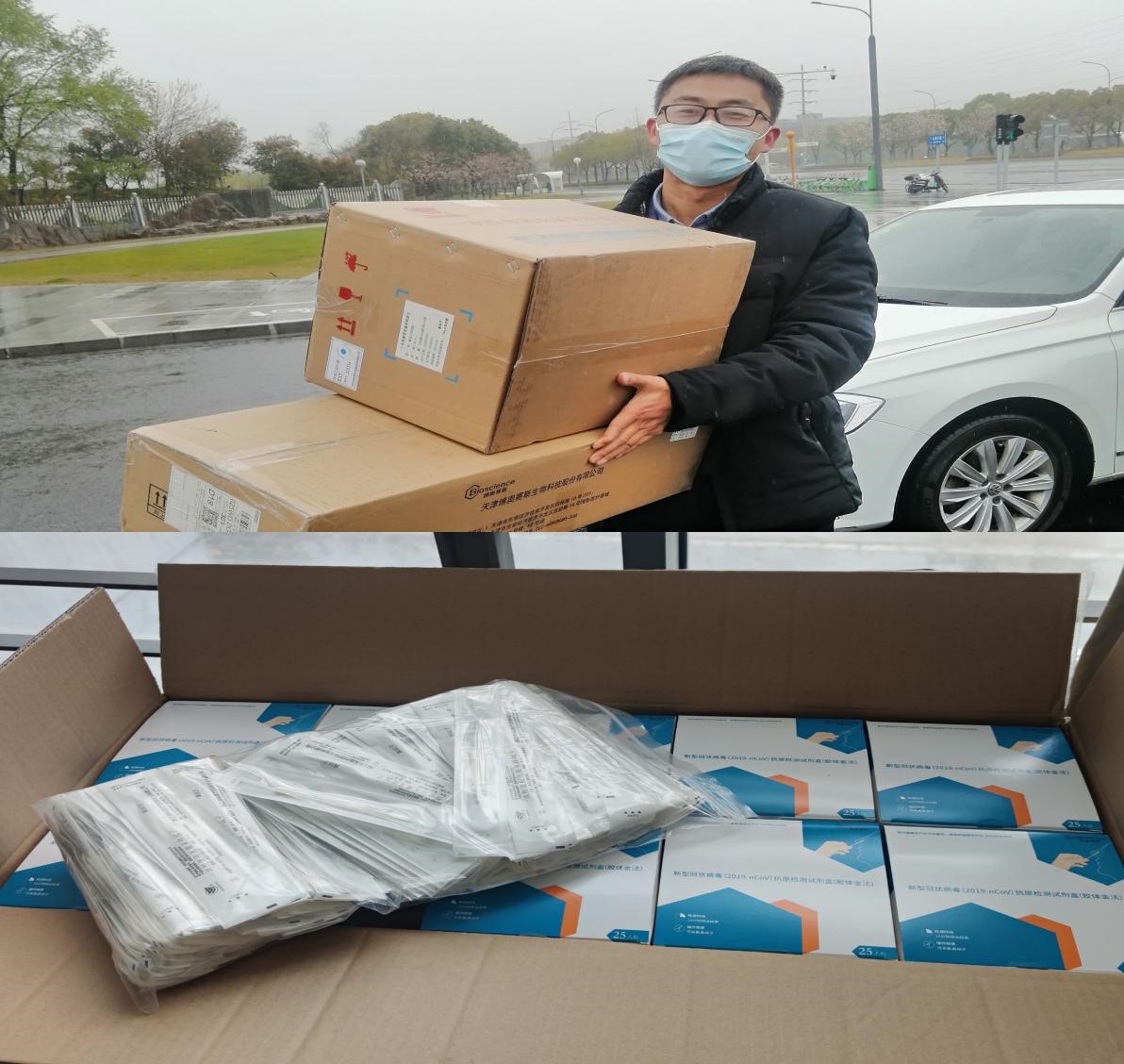 3月25日,在全校师生众志成城,全心抗疫的关键时刻,江苏崇玥信息技术有限公司负责人、营销062班杨召朋冒雨为经济与管理学院送来500套新型冠状病毒抗原检测套装,为母校防疫工作贡献了一份力量。