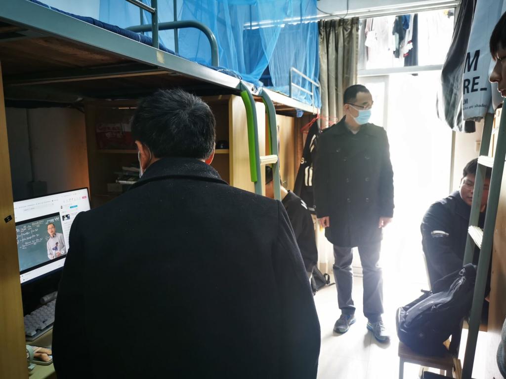 走访宿舍期间,陆书记叮嘱同学们在集体生活中要互帮互助、相互包容,注重宿舍第二学习空间的营造,尽快转变角色,适应线上学习生活。线上学习是基于目前疫情防控要求,请同学们提高认识,理解配合。同时,还仔细查看了宿舍的环境卫生、消防安全情况,提醒同学们应提高安全防范意识。