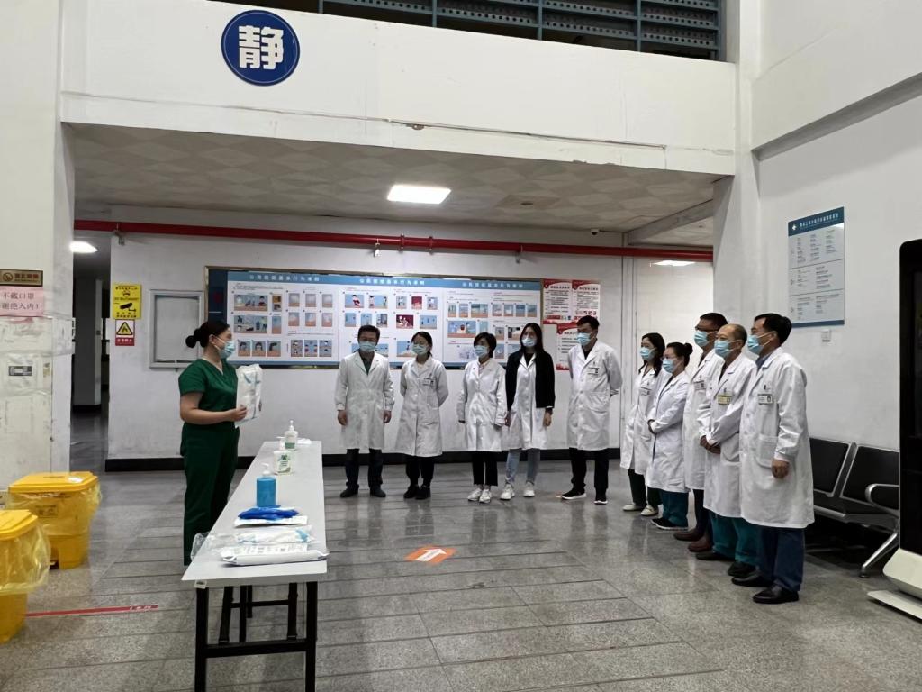 4月27日晚,在学校门诊大厅,门诊部叶长青主任按计划组织应急演练,凌丽老师现场示范,着重就七步洗手法、摘戴口罩、穿脱防护服等常见防护用品的操作技能进行着培训……加强培训和演练,已成了校园封控管理后,校园“大白”们晚上的工作日常。与之前不同的是,第三周住校值守的全部是由党员干部和入党积极分子组成的门诊部党支部“先锋班”,培训结束时已晚上八点多,他们马不停蹄走进会议室,继续开展政治理论学习和工作交流,厚植思想、汲取力量。