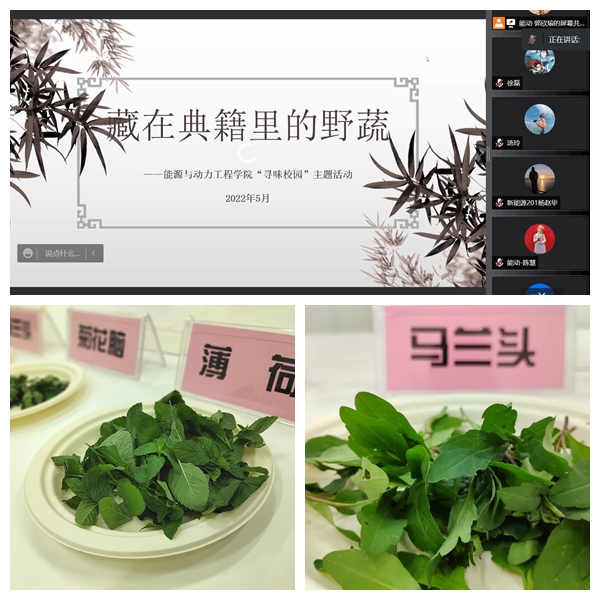 “离离幽草自成丛,过眼儿童采撷空。不知马兰入晨俎,何似燕麦摇春风?”小小的野菜也有着多元的文化,而每种野菜的营养及药用价值各不相同。学院依托线上平台开展“寻味校园”传统文化体验活动,引导同学们识别不同的野菜,感受传统文化。“《诗经》里有‘谁谓荼苦,其甘如荠’的赞叹,所以老南京人一直延续着 ‘三月三,吃荠菜煮鸡蛋,一年不头疼’的习俗。”学工办辅导员化身“讲解员”,围绕南京春夏常见、富有地域特色的野蔬以及与节气相关的传统文化,通过知识问答、游戏互动等环节,给同学们带来了一堂生动别样的体验。“我根据老师的分享在校园里找到了艾草,这些都是书本上学不到的知识,作为青年学生,我们既要多读‘有字之书’,也要多读‘无字之书’”能动类2107崔靖宇对这样的活动形式点赞。